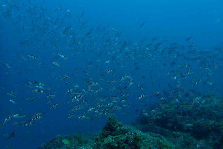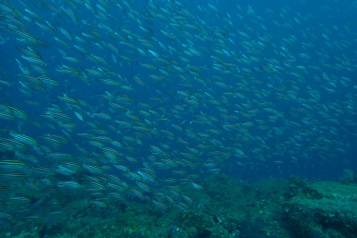 さぁ、久々の海は・・・透明度はパッとはしないけど群れは多い!!!