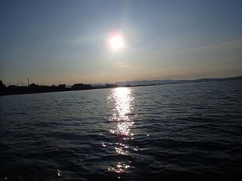 朝日を受けながら 穏やかな海~ いざショウガセへ!