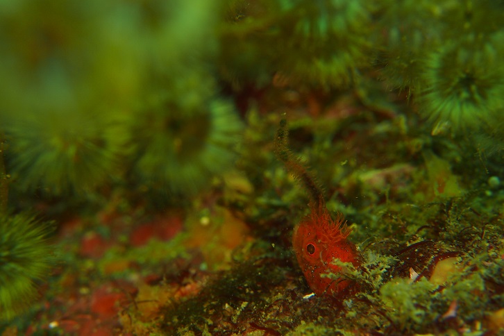 を撮ろうとおもてたんですが・・・コケギンポが巣穴から飛び出しパクパクしていたのでよく見ると・・・