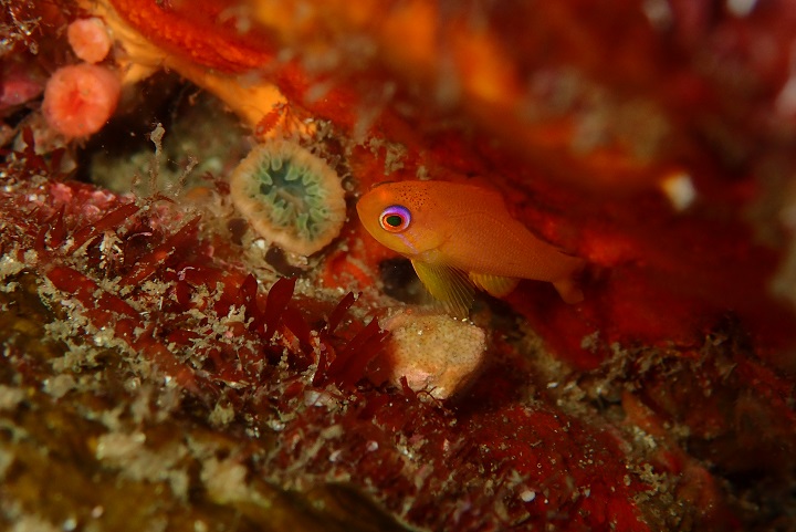 岩の隙間を見るとキンギョハナダイの赤ちゃんが!!