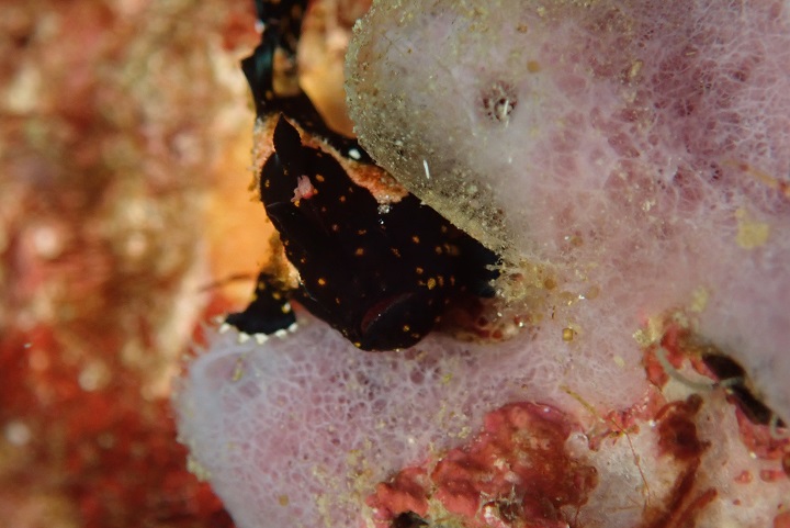 近くの葉っぱの下に隠れていました(._.)