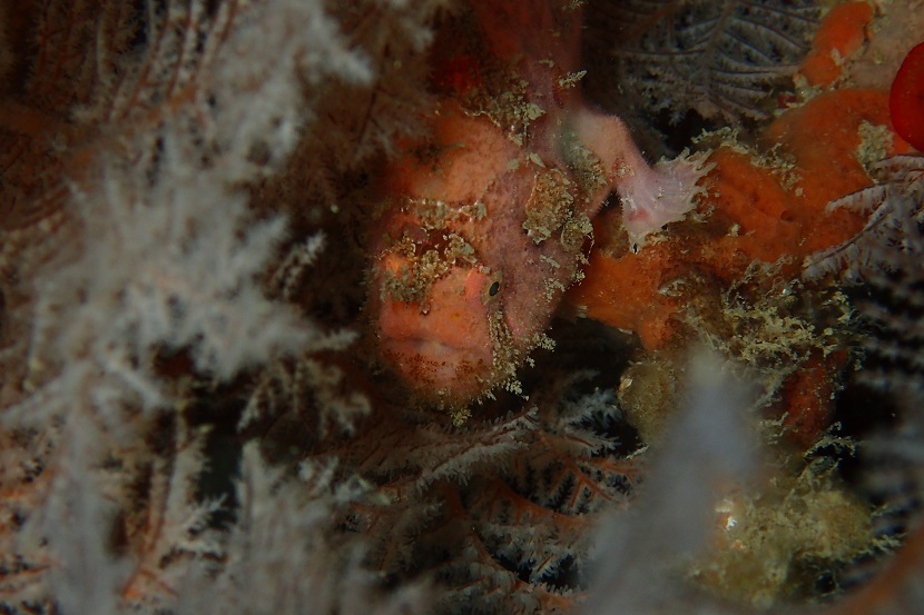 圧巻のタカベの群れに別のポイントですがオレンジと白のカエルアンコウ~